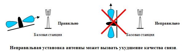 2. Антенна устанавливается так, чтобы перпендикуляр к оси антенны был направлен на базовую станцию GSM. Если точное направление на источник сигнала не известно, антенну следует устанавливать вертикально.